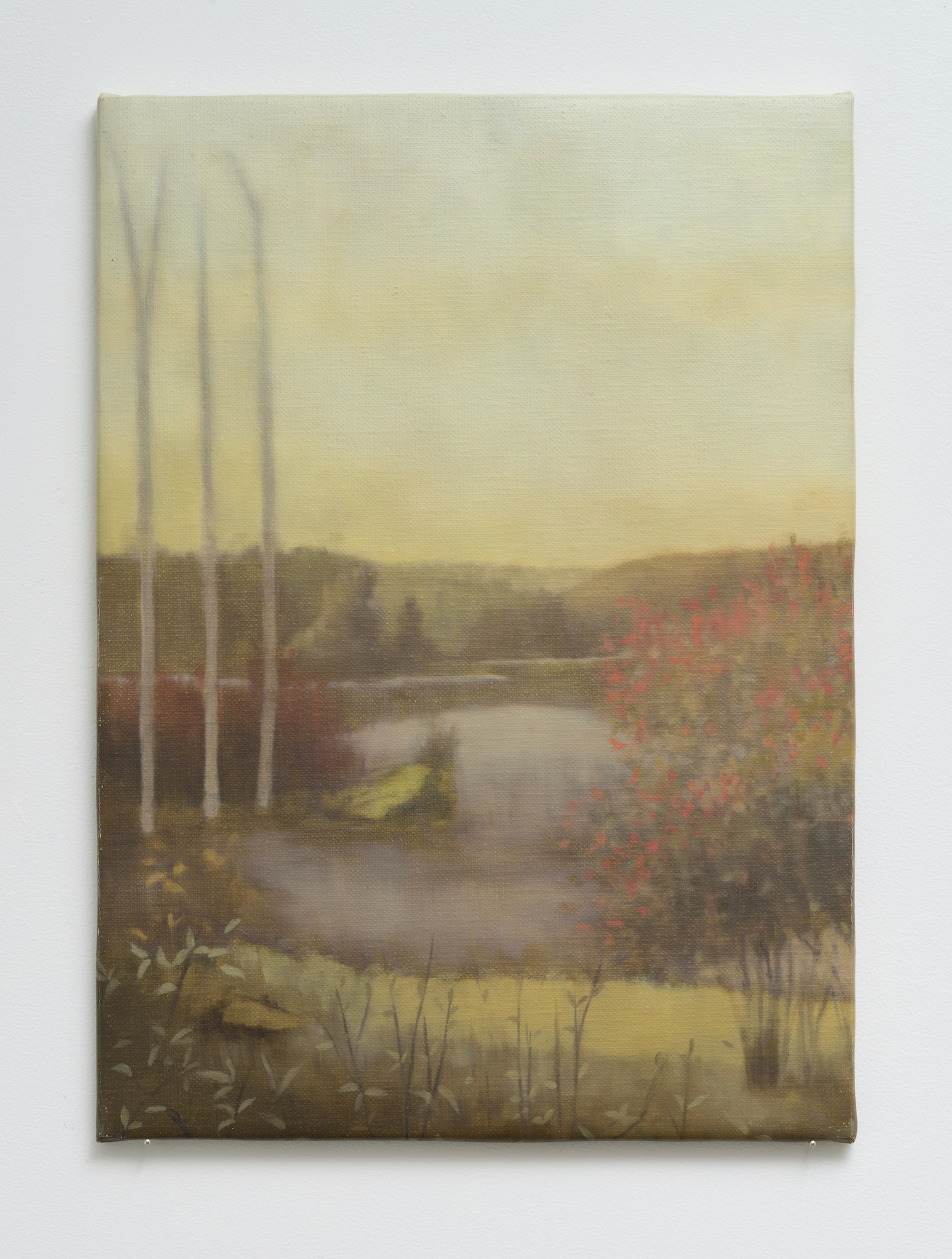 Depicting spaces of refuge, the paintings hold particular resonance in the protective and nurturing qualities of home. Techniques such as repetition, scale, blur, montage, and detail (or lack thereof) are employed to record and translate the artist’s experience of place, in turn reflecting upon the precariousness of remembrance during times of such ecological upheaval and change. Moreover, the delicate nature of memory and how we recall places that have a sense of stillness echoing throughout.